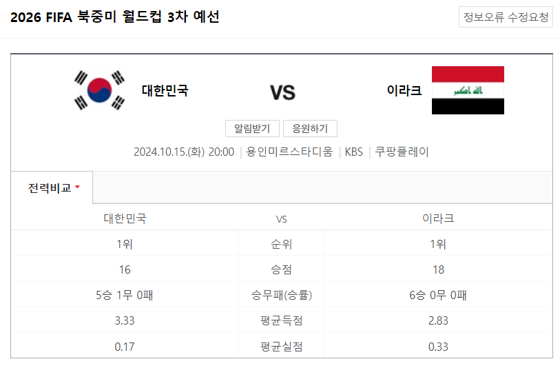 이라크전 중계는 KBS2, 쿠팡플레이에서 보실 수 있습니다.