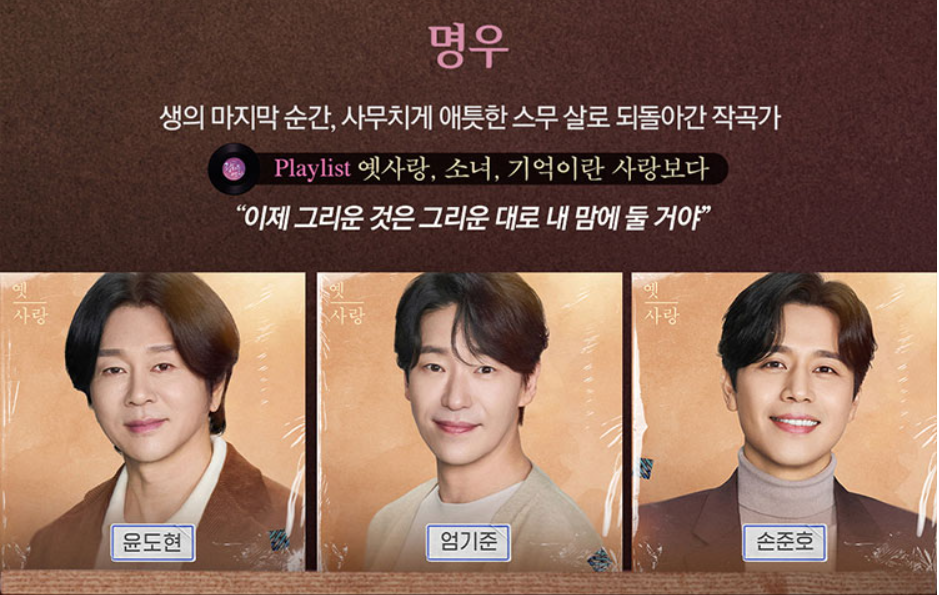 캐스팅을 보시면 정말 유명한 배우분들이 많이 나오십니다. 그리고 playlist만 봐도 두근거리지 않나요?