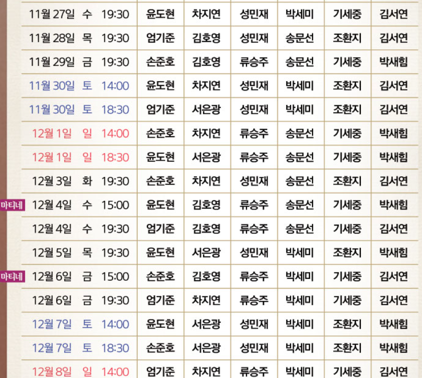 예매정보, 캐스팅, 일정, 할인정보 등 총정리하여 포스트하겠습니다