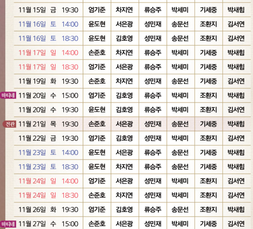 예매정보, 캐스팅, 일정, 할인정보 등 총정리하여 포스트하겠습니다