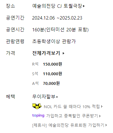 예매, 공연 일정, 줄거리, 공연장 가는 법 등 총정리하여 포스팅해보겠습니다.