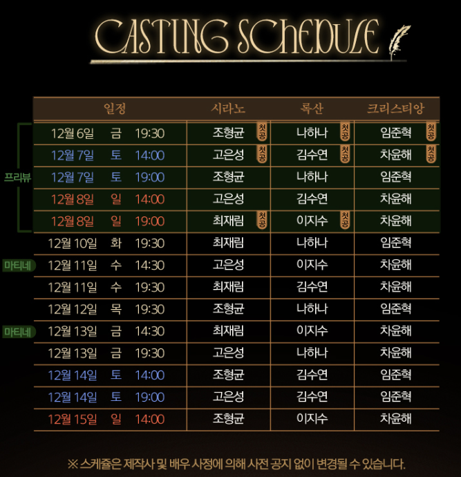 5. 캐스팅 일정6. 할인 정보 및 팁