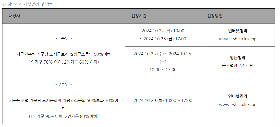 ✔ 1순위 : 10월22일 10:00~ 10월25일 17:00 ※ 방문신청은 10월23일부터 가능