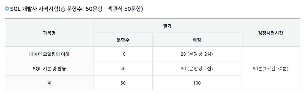 SQLD 시험은 한 문제 당 2점씩 총 50문항을 풀어나가는 시험입니다.